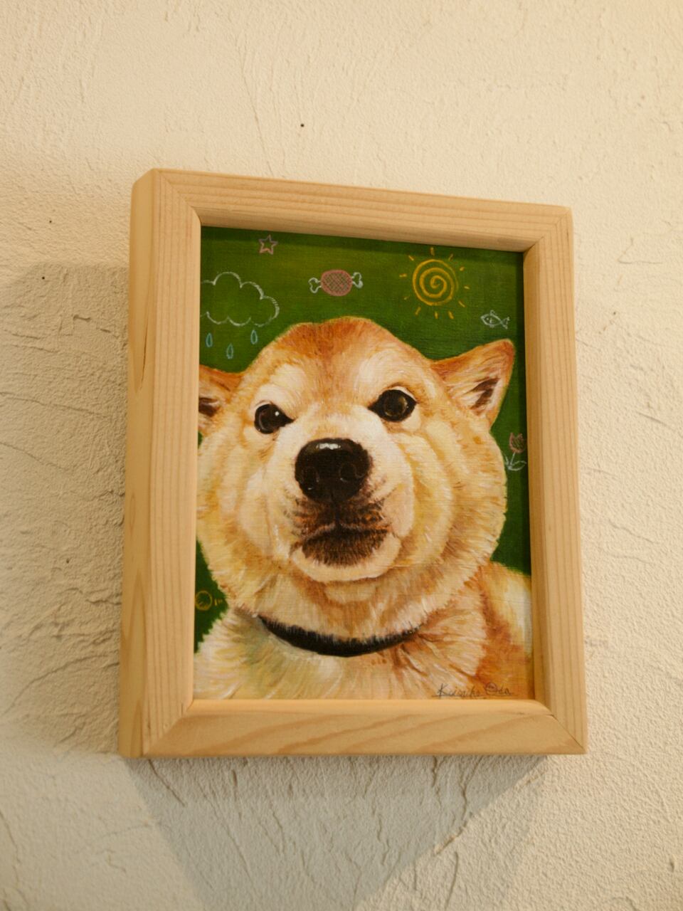 ちょっと怒り気味の表情が可愛らしい一枚です。柴犬が見つめる先はどこなのか、想像が広がりますね。